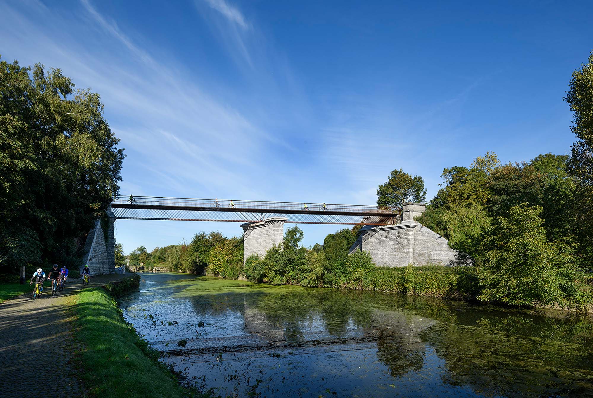La passerelle d’Arquennes enjambe la Samme et permet de connecter deux tronçons du RAVel 141. (Réseau Autonome de Voies Lentes)