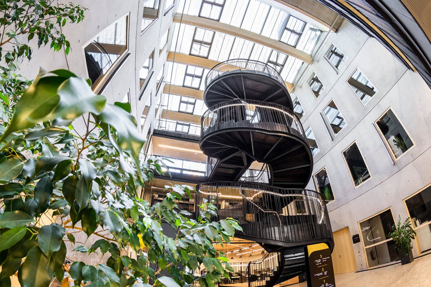 «Cet atrium constitue le cœur du bâtiment. Il s’articule autour d’un escalier majestueux qui se dresse comme un joyau au centre du bâtiment», explique l’architecte Camille Dengler du cabinet Jonas Architectes Associés dans le magazine Neo mag n°50.