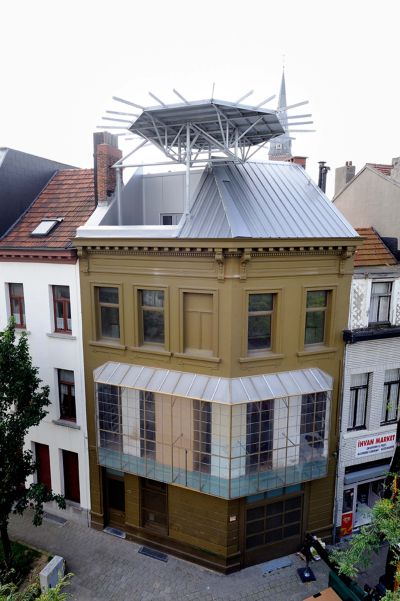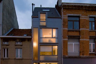 Tekst: <p>Un entrepôt de 245m² utilisé par une entreprise de restauration en périphérie de l’ancien centre de Bruges, était au fil des ans encerclé par des immeubles résidentiels.</p><p>L’architecte a opté pour une nouvelle construction de remplacement (atelier avec habitation) ressemblant beaucoup au bâtiment d’origine. Le volume parallélépipédique de 33 x 5 m est logé entre des murs mitoyens, avec un espace restant utilisé comme un jardin. Douze portiques identiques présentant un entre-axe de 3 m apportent un certain rythme aux onze travées dans la distribution de l’espace. Le projet a été réalisé en deux phases, les portiques de la partie habitation sont laqués en noir, tandis que ceux de la partie professionnelle ont été métallisé en noir. Comme seuls les portiques font office d’éléments porteurs, l’architecte dispose d’une totale souplesse fonctionnelle.</p><p>Le but n’est pas de se positionner comme un monument, mais bien de témoigner du passé de manière subtile.</p>