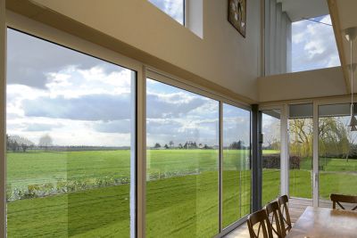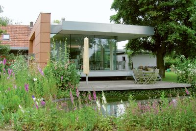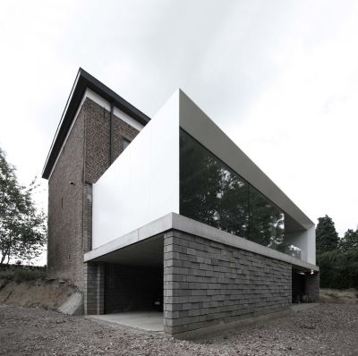 Tekst: <p>Cette maison unifamiliale marquante a été conçue pour deux soixantenaires tenant énormément à leur sensation d’espace. Elle surplombe son envi-ronnement naturel, tel un poste d’observation. L’architecture (pilotis, toit-terrasse, fenêtres en longueur…) est un clin d’œil à l’architecte suisse Le Corbusier, et plus précisément à la Villa Savoy située à Poisy, près de Paris (1929). La rationalité et le minimalisme contrastent avec le cadre rural.<br>