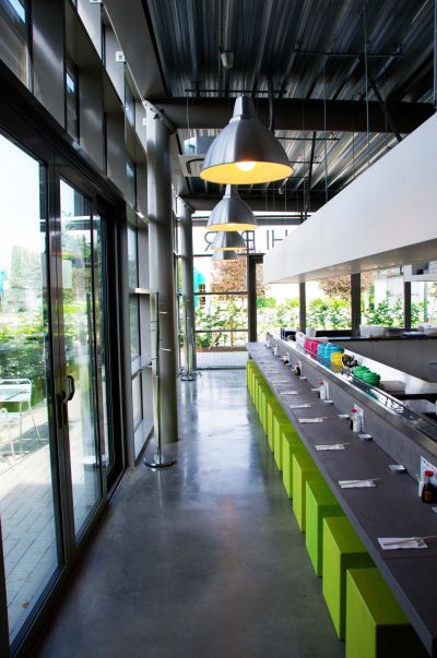 Tekst: <p>Pour traduire le concept unique du magasin en un bâtiment adapté, une atmosphère de marchés couverts méridionaux a été créée.</p><p>Les différentes entités sous cette structure de toit tridimensionnelle sont détachées les unes des autres. Le centre de l’espace commercial est occupé par un bistrot.</p><p>Pour le toit de tentes visé, le choix de l’acier allait de soi. Le point de départ est un système de parapluie inversé sur des colonnes rondes qui forment un ensemble tridimensionnel. La toiture est constituée de colonnes en acier rondes qui font également office d’évacuation des eaux de pluie, avec un ensemble coopérant de plaques d’acier et d’ailettes de renforcement dessus.</p><p>Le défi se situait aussi au niveau de l’encorbellement avant, qui rend plus naturelle la transition de l’extérieur vers l’intérieur.</p><p>L’ensemble a été revêtu d’une peinture ignifuge (Rf-1h). Les tôles en acier sont perforées de manière à assurer, avec la toile acoustique supérieure, une excellente acoustique dans l’espace de magasins ouvert.</p><p>L’épicerie fine est l’endroit où se retrouvent les connaisseurs.</p>