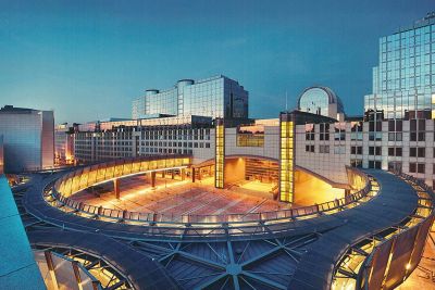 Tekst: <p>L’extension et la modernisation du Centre de Conférences du Kirchberg (CCK) représente un ouvrage important pour la vocation européenne du Luxembourg. Le Ministère des Travaux Publics met ainsi en place un outil nécessaire pour assurer dans les meilleures conditions possibles l’accueil des sessions du Conseil dans une Union européenne élargie.<br>La deuxième extension du Centre de Conférence du Kirchberg concerne le centre de presse. Ce nouveau bâtiment est une construction en structures mixtes acier-béton et comporte plus particulièrement une structure en acier pour la toiture de la deuxième salle de conférences circulaire.<br>La toiture de cette salle consiste en une coupole d’un diamètre de 31,2 m formée par un système de poutrelles radiales (HEA 300) qui repose sur un anneau périphérique. Une étude de plusieurs modèles a permis de définir les efforts horizontaux en fonction de la hauteur des treillis.<br>Pour respecter les niveaux imposés par l’architecte et afin d’éviter de créer de la torsion dans la poutre circulaire en béton, une géométrie et un système statique originaux ont été mis en place : un appui unique par poutre, placé judicieusement, et des membrures tout en compression.<br>Le centre de presse sera relié à l’actuel hémicycle par une nouvelle passerelle métallique transparente.</p>