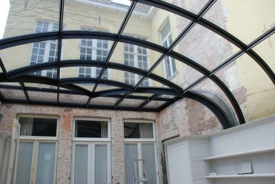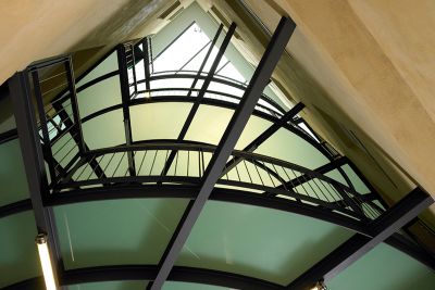 La fonction de la coupole en acier est à la fois esthétique et opérationnelle. Elle assure d’une part un apport de lumière suffisant, et doit d’autre part être démontable pour la mise en place ou l’enlèvement de l’escalator ou d’autres appareillages de grande taille. Exigence supplémentaire, la coupole devait être à même de résister aux efforts accidentels. Afin de satisfaire ces deux exigences contradictoires, la solution en acier a été choisie, celle-ci étant à la fois légère et résistante.</p>