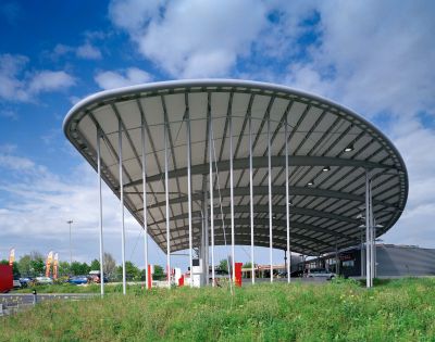 Tekst: <p>La nouvelle gare du site de Belval représente un lieu important de passage et d’échange. C’est pourquoi, en concevant cette gare, la volonté de l‘architecte a été de mettre l’accent sur les notions de mouvement et de dynamisme. Il a voulu rompre avec l’aspect droit, carré, de la plupart des édifices ferroviaires. Il a alors dessiné une forme arrondie qui fait penser au fuselage d'un avion, si bien que l’on peut parler véritablement de projet « aérien ». La gare – une plate-forme de 120 mètres de long qui repose sur 16 piliers - passe ainsi au-dessus des quais, ceux-ci étant littéralement "avalés" par la gare qui les surplombe.<br>Le toit de la gare est constituée de 33 arcs d'acier en forme d‘ellipse entre lesquels se tend une membrane translucide qui sert de protection solaire : une triple couche de film imprimée à damier se gonfle ou se dégonfle pour laisser passer plus ou moins de lumière et de chaleur.<br>En tant que lieu de passage, la gare est aussi ouverte sur l'extérieur par de grandes surfaces vitrées qui offrent une vue imprenable sur tout l‘environnement, et reliée aux infrastructures voisine, comme le complexe commercial Plaza 1, la salle de spectacle ‘Rockhal’, le parking, etc…</p>