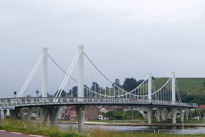 Tekst: <p>Le pont en béton existant avait été construit juste après la Deuxième Guerre mondiale et devait être remplacé en raison de l’élargissement du canal Al-bert ayant pour but de permettre la navigation in-térieure jusqu’à 9000 tonnes. Le nouveau pont en acier (1040 tonnes) a une portée centrale de 100 m et ouvre de cette manière un passage libre de 86 m sur l’eau. Le site étant classé, les conditions d’intervention étaient complexes. C’est précisé-ment à cet endroit que la Belgique est entrée dans la Seconde Guerre mondiale ; le bunker côtoyant le pont en étant le témoin silencieux. Toute la mission de conception (stabilité, architecture et paysage) a été réalisée par le bureau Ney & Partners, en colla-boration avec l’artiste Jozef Legrand.</p>