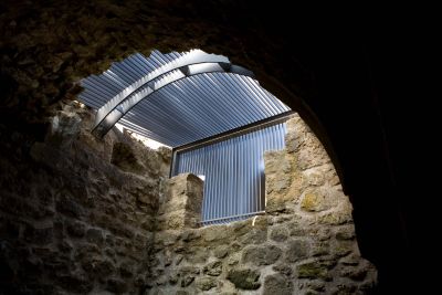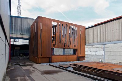 Tekst: <p>Une forme, une masse ..une tour, un donjon!.. ce projet se devait de conserver la force du concept initial et ne souffrir d’aucun artifice architectonique, ni d’empilement démonstratif technique. C’est la raison pour laquelle l’architecte a opté pour une utilisation radicale d’acier autopatinable. Ce sujet était l’occasion d’expérimenter une autre conception de l’acte de construire : une coque étanche en acier auto-patinable structurant, fabriquée en atelier pour se substituer à la toiture de la chapelle. Le cube d’environ 6 m d’arrête vient ainsi doubler le volume existant en hauteur dégageant trois niveaux. Laminé à chaud, l’acier noir se transforme lentement chaque jour, prenant sa teinte rouille en accord avec la pierre meulière dont est constitué le socle. Ce bloc est-il plein ou vide? L’architecture ne laisse rien transparaître de sa technicité, de son programme, en fuyant tout maniérisme ... et cela grâce à l’acier !