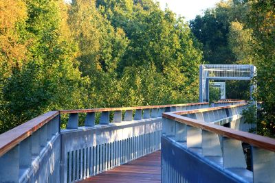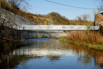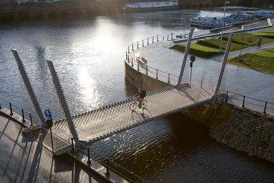 Tekst: <p>La passerelle pour piétons et cyclistes surplombant la Seille, à Metz, relie désormais le quartier Queu-leu et le centre-ville. Cette passerelle, dessinée par l’architecte française Brigit de Kosmi, a été conçue comme un berceau en acier.<br>