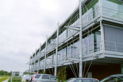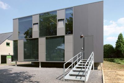 Tekst: <p>La station de pompage Sudcal se situe à l´entrée Nord-Est de la ville d´Esch-sur-Alzette. Il s’agit d’un bâtiment technique qui a pour fonction d´emmagasiner l´énergie pour la transporter en tant que chauffage urbain dans la périphérie. <br />Le choix d´utiliser de l´acier pour le revêtement du bâtiment s´explique par les possibilités que ce matériau offre. Le tissu en acier inoxydable choisi laisse passer l’air à 60%, ce qui garantit le respect des valeurs souhaitées par les techniciens et satisfait les exigences de l’architecte de ne pas laisser apparaître de grilles d’aération. <br />Le tissu est ancré au moyen d’oeillets à manchons tous les 3 m à la verticale. Un serrage à ressort le tient en tension. Pour la salle des pompes les bandes de tissu métallique ont une largeur de 2,00 m et une longueur de 6,60 m, pour le réservoir tampon elles ont 2,50 m de largeur et 14,00 m de longueur. Les bandes étant livrées entièrement préfabriquées, le temps de montage s’est avéré très court.</p>