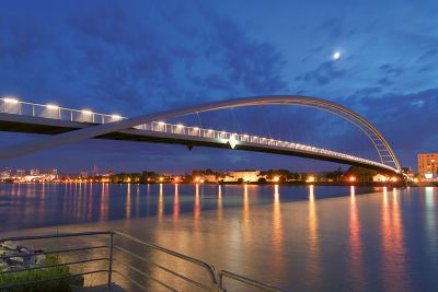 L’esthétique du pont - 116 m de long pour 20 m de large - s’inscrit parfaitement dans son envi-ronnement. Le pont fluidifie le trafic et offre plus de place aux piétons et aux cyclistes. Grâce aux larges trottoirs, aux bancs intégrés et à l’éclairage d’ambiance, ce pont est bien plus qu’un simple moyen pour se déplacer d’une rive à l’autre.</p>