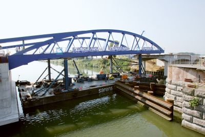 Tekst: <p>Le prolongement vers le nord et vers le sud de la ligne de tram parisien T3 nécessite des travaux particuliers d’infrastructure. L’un des plus impor-tants est l’élargissement du Pont National qui enjambe la Seine. Ce pont datant de 1852, ayant fait l'objet d'un premier élargissement en 1936, a une nouvelle fois été élargi par l’adjonction d’une passerelle. Cette passerelle en acier, destinée aux piétons, de 4 m de large et de 260 m de long, est directement ancrée sur l’ouvrage d’art existant.<br>