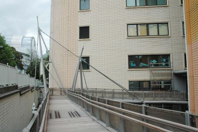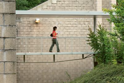 Des passerelles de liaison en acier et verre relient le Centre Médical à l’Hôpital existant à tous les étages. <br>