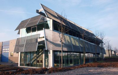 Tekst: <p>La société Issol, maître de l'ouvrage, fabrique des capteurs photovoltaïques de haute performance et développe des solutions d’intégration archi-tecturale sur mesure. Il fallait que le bâtiment soit représentatif de cette activité et illustre les possibilités de pose de panneaux sur des formes architecturales complexes. <br>