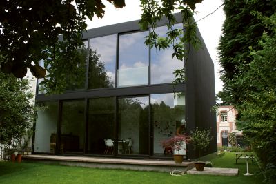 Tekst: <p>Deux frères, tous deux architectes ont bâti chacun leur habitation familiale, sur une grande parcelle qu'ils ont divisée. Chacun y a été de son projet avec une option commune pour l'ossature métallique et pour une architecture contemporaine.</p><p>La colonne vertébrale de la maison d’Arnaud est constituée par une poutre treillis de 8,5 m de long, formée de profilés minces en acier à froid. Noyée dans le plancher mixte acier-béton , elle rigidifie l'ensemble de la structure. La façade extérieur consiste en un panneau sandwich noir micro ondulé de 12 cm.</p><p>Le système constructif primaire de la maison de Johan est une ossature métallique formée de profils minces . Les avantages d’un tel système sont d’isoler les éléments porteurs par la projection de polyuréthane expansé (15 cm) et de diminuer le poids global du bâtiment. À l’étage, le couvrant rez a été conçu avec une dalle mixte acier-béton d’une épaisseur de 24 cm L'enveloppe combine un bardage en cassettes pour le car-port et le volume du séjour et des lames pour les autres parties. </p>