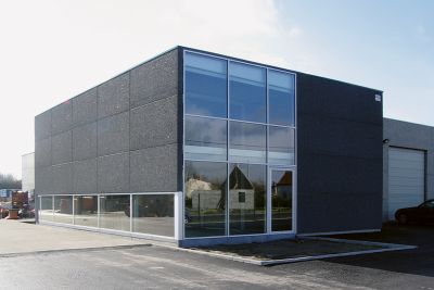 Tekst: <p>Le nouveau bâtiment d’exploitation de Loda, fabricant de produits d’entretien, abrite à la fois la production, le stockage, l’emballage, la manutention et les bureaux de la société. Le maître d’ouvrage voulait un bâtiment de caractère qui respire la fraîcheur, la classe et la qualité.</p><p>Le choix d’une structure en acier est devenu rapidement évident, étant donné les grandes portées, les possibilités de détail fines et élégantes, et l’étage en porte-a-faux. La structure intérieure est constituée de poutres en treillis qui franchissent un espace d’environ 25 m.</p><p>A l’extérieur, on a opté pour des panneaux plats, blancs comme neige et placés horizontalement. Un surcroît d’attention a été consacré ici aux détails. Les joints entre les panneaux ont été exécutés très finement grâce à des profils en T. Pour la menuiserie extérieure, un nouveau type de profil de châssis a été conçu, dans lequel le vitrage est collé de manière à ce qu’il se situe parfaitement dans le même plan que le platelage et qu’aucun profil ne soit visible.</p><p>Pour cette construction, 176 tonnes d’acier ont été mises en œuvre, dont plus de 5 000 m² pour le steeldeck (Joris Ide 135 et 158) et 2 200 m² pour les panneaux en sandwich ‘Evolution’ de Kingspan.</p>