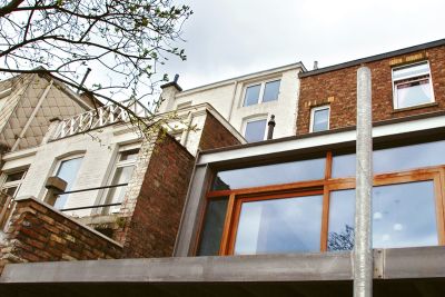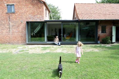 Tekst: <p>La maison existante, à l'instar de nombreuses habitations anciennes, se caractérise par des maté-riaux traditionnels mis en œuvre selon un langage classique d'architecture de maison bourgeoise: soubassement enduit et contours de fenêtres en maçonnerie. Malgré son caractère, l'habitation n'offrait que de petites ouvertures vers le jardin <br>