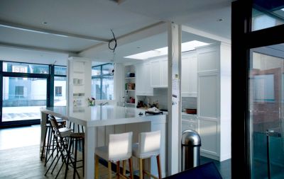 et une ambiance confinée aux pièces de vie. Les locaux situés à l’arrière - la cuisine et la salle de bain, anciennement considérés comme des espaces de service - bloquaient l’ouverture de la maison vers le beau jardin et l’intérieur d’îlot très végétal.</p>
