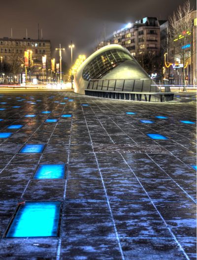 Tekst: <p>La demande de 2.000 places de parking pour cyclistes sur la 18 Septemberplein à Eindhoven et l’importante fonction logistique de la place ont mené à la conception d’un garage souterrain pour vélos. Deux constructions coniques identiques sur la place constituent l’accès au parking à vélos.<br>