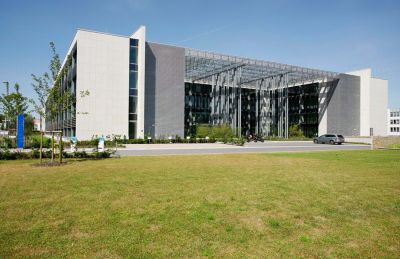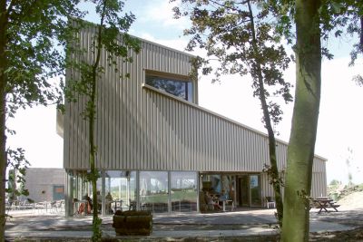 Tekst: <p>Le bâtiment abrite un centre de formation et d’innovation logistique et se trouve sur une presqu’île de l’étang existant. Le volume a été érigé sous un sol artificiel de niveau. Il s’ensuit une toiture verte praticable avec parcours finlandais. Le bâtiment est accessible par une passerelle.</p><p>La façade du côté de l’étang est conçue comme un ensemble organique et est finie par un habillage de façade en bois thermiquement renforcé. La forme particulière a nécessité une étude à l’aide de l’ensemble 3D Autocad. A la base, l’entrée principale est un parallélogramme, les autres murs rideaux forment des trapèzes. En outre, ces deux éléments ont été conçus comme des façades infléchies dans l’espace, ce qui rend unique la forme de tous les montants et de toutes les traverses.</p><p>Le bâtiment abrite quatre salles de cours, une salle de pratique, une salle pour le Conseil d’Administration et deux auditoires à associer, pouvant accueillir chacun 100 personnes. Le centre de formation et d’innovation a reçu le label de durabilité BREEAM Outstanding. </p>