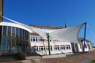 Tekst: <p>Cet auvent a été placé dans la cour de récréation de l’école de Leudelange afin d’assurer aux enfants une protection contre les intempéries, tout en préservant un maximum d’éclairage naturel dans le bâtiment existant. <br>