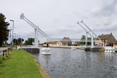 Tekst: <p>L’édifice historique Smedenpoort (Porte des forgerons) fut érigéà Bruges aux treizième et quatorzième siècles. Cette porte d’entrée de la ville était devenue trop étroite pour permettre une circulation fluide des voitures, piétons et cyclistes, particulièrement aux heures de pointe. C’est pourquoi il a été décidé de réaliser deux passerelles piétonnes de part et d’autre du pont-levis existant. Le tracé en plan a été adapté de telle sorte que les nouvelles passerelles enserrent la porte et le pont existants. Les nouvelles passerelles se doivent de respecter le contexte historique fort dans lequel elles s’incrivent.</p><p>La multiplication des supports et l’utilisation structurelle du garde-corps permettent de réduire la dimension de tous les éléments porteurs et d’obtenir ainsi une transparence maximale. La structure combine des poutres de type Warren et Vierendeel. Les deux mains courantes fonctionnent comme poutres principales, qui portent un tablier fait de dalles de béton posé sur des traverses. Les poutres continues sont soutenues tous les 5 m par de fines colonnes de 60 sur 60 mm. Les structures portantes sont en acier auto-patinable.</p>