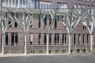 Auvent d’entrée et cage d’ascenseur de l’Hôpital Maria Middelares